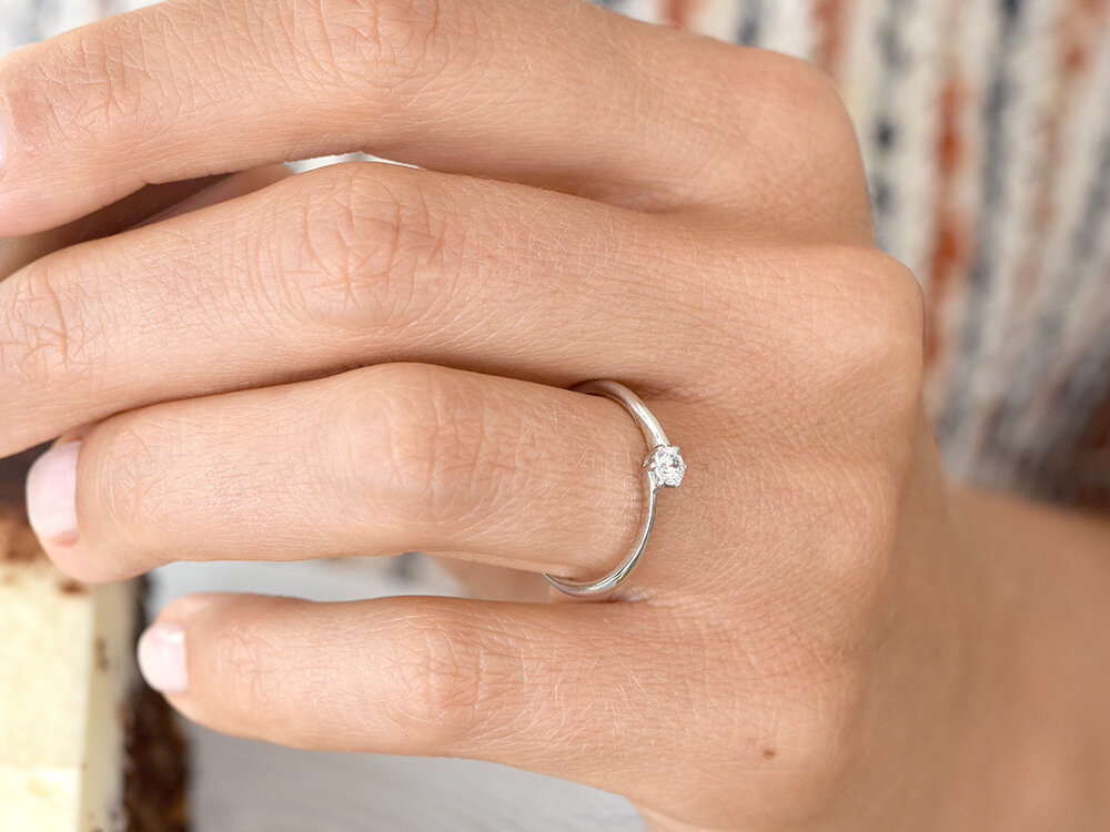Ein Verlobungsring mit Labordiamant und dem besonderen Twist für den romantischen Antrag: Das Modell Devotion vereint eine ausgewogene Kombination aus Solitärring und Spannring.