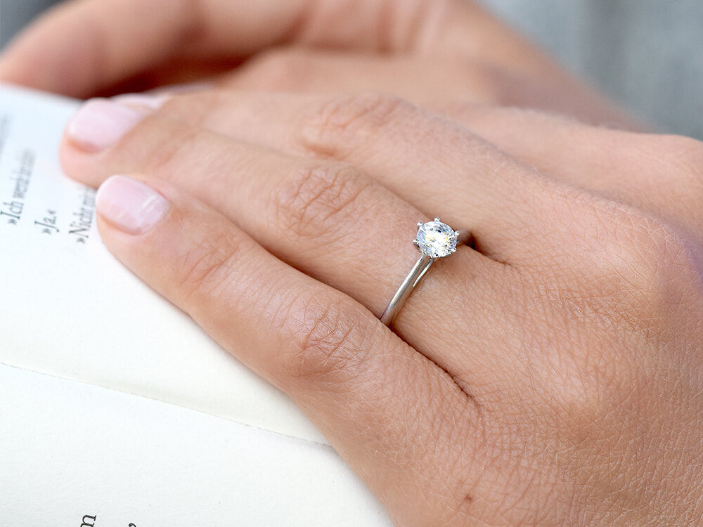 Der Solitärring Heaven 6 Weißgold oder Heaven 6 Platin mit Labordiamant ab 0,25 ct.