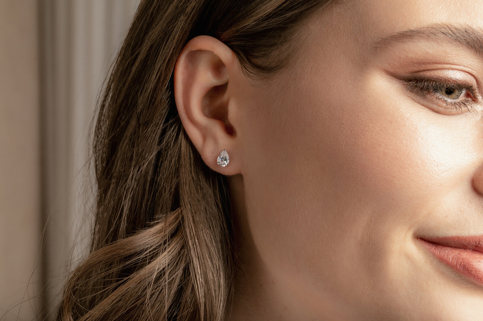 Bei den prachtvollen Ohrsteckern Diamond Drop stehen die Labordiamanten mit Tropfenschliff im Mittelpunkt. Die dreigliedrige Fassung hält sich dezent im Hintergrund und lässt die traumhaften Labordiamanten funkeln.