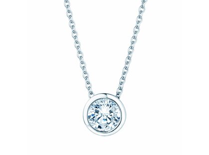 Ein Klassiker, der Anhänger Eternal mit einer Zargenfassung. Der Anhänger ist zeitlos und eignet sich als ideales Geschenk. Wählen Sie zwischen 18k Gold und Platin und einer Diamantgröße zwischen 0,15-1,00 Karat.