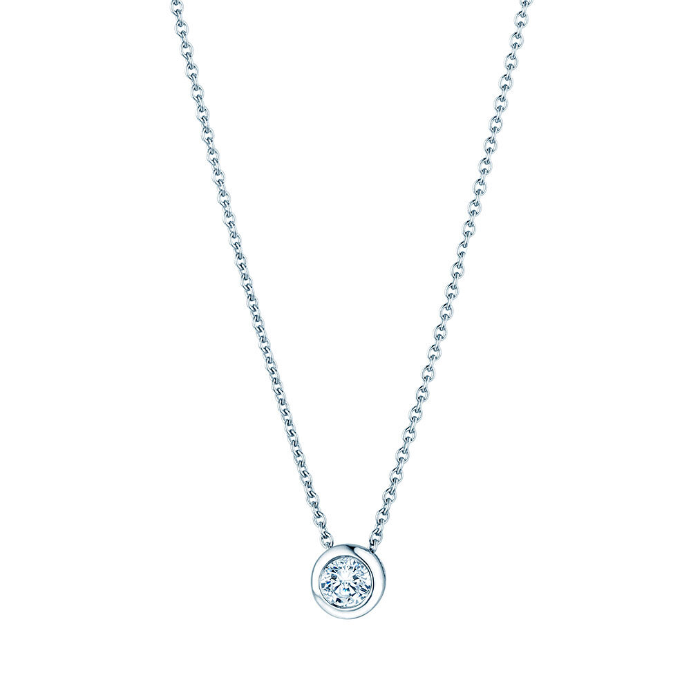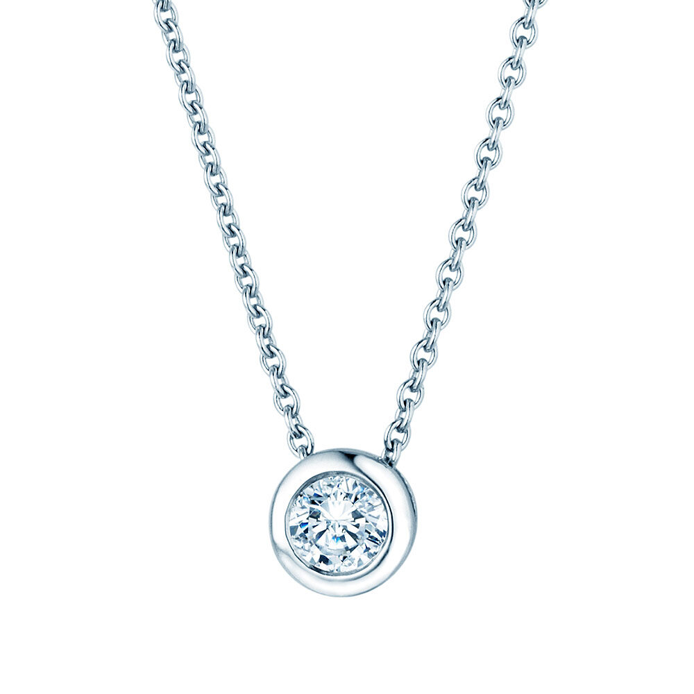 Ein Klassiker, der Anhänger Eternal mit einer Zargenfassung. Der Anhänger ist zeitlos und eignet sich als ideales Geschenk. Wählen Sie zwischen 18k Gold und Platin und einer Diamantgröße zwischen 0,15-1,00 Karat.