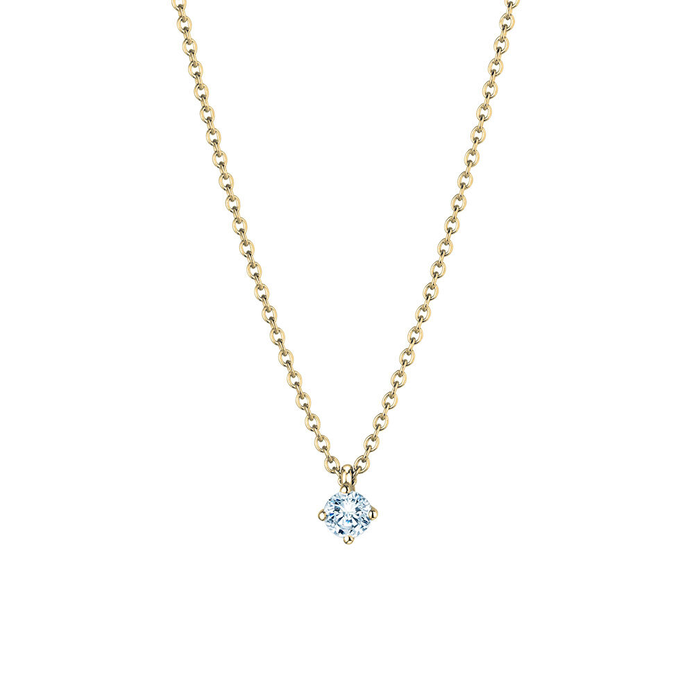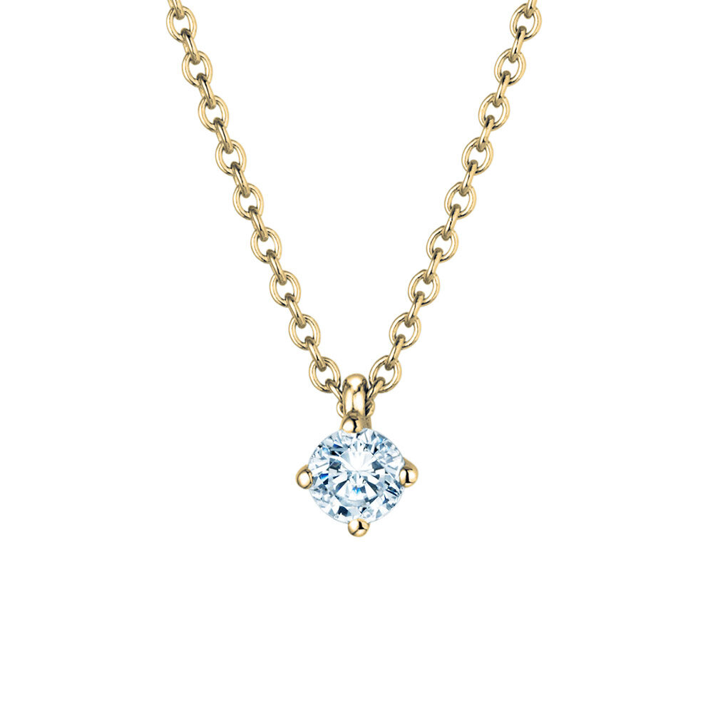 Gefasst in einer 4er Krappenfassung funkelt der einzelne Solitäranhänger. Sie haben die Wahl und können den Anhänger mit oder ohne passender Kette bestellen. Den Diamanten bieten wir zwischen 0,15 Karat und einem Karat an.