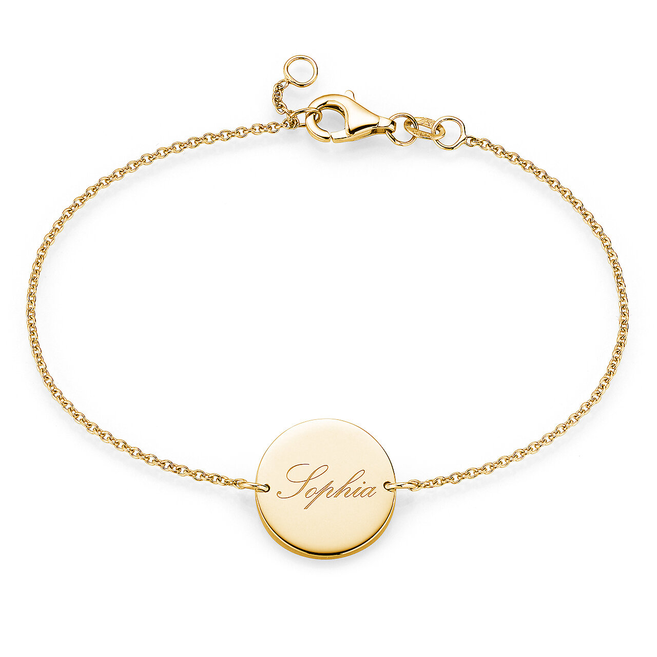 Ein Armband mit rundem Gravurplättchen – Symbol für Sonne und Lebensfreude. Das zauberhafte Schmuckstück wird gerne von Menschen getragen, die die Initialen des Kindes oder des Partners immer bei sich haben wollen. Ein wunderbares Geschenk für Jubiläen, Geburtstage und zu festlichen Anlässen.