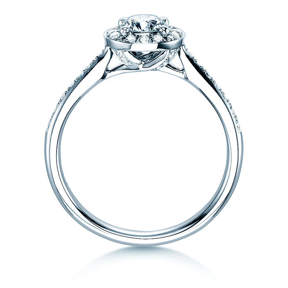 Ein klassische Halo-Ring und der große Bruder vom erfolgreichen Halo-Petite-Modell erstrahlt der Verlobungsring Halo Classic im opulenten Lichthof des Diamantkranzes, der den Hauptstein betont. Ein beeindruckender Ring mit atemberaubendem Funkeln.