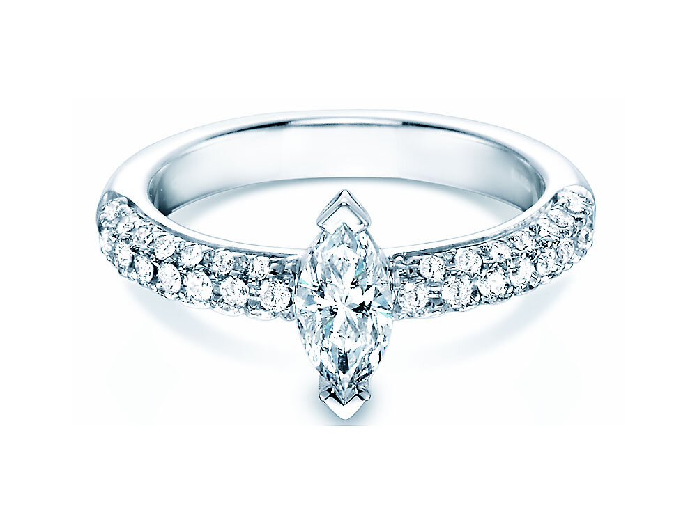 18 Karat Weißgold mit Diamant im Marquise-Schliff Der Ursprung des Marquise-Schliffs befindet sich im Zeitalter von Ludwig XIV. Der Marquise-Schliff strahlt besondere expressiv.