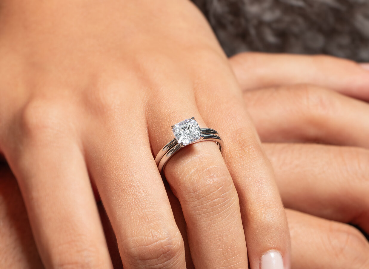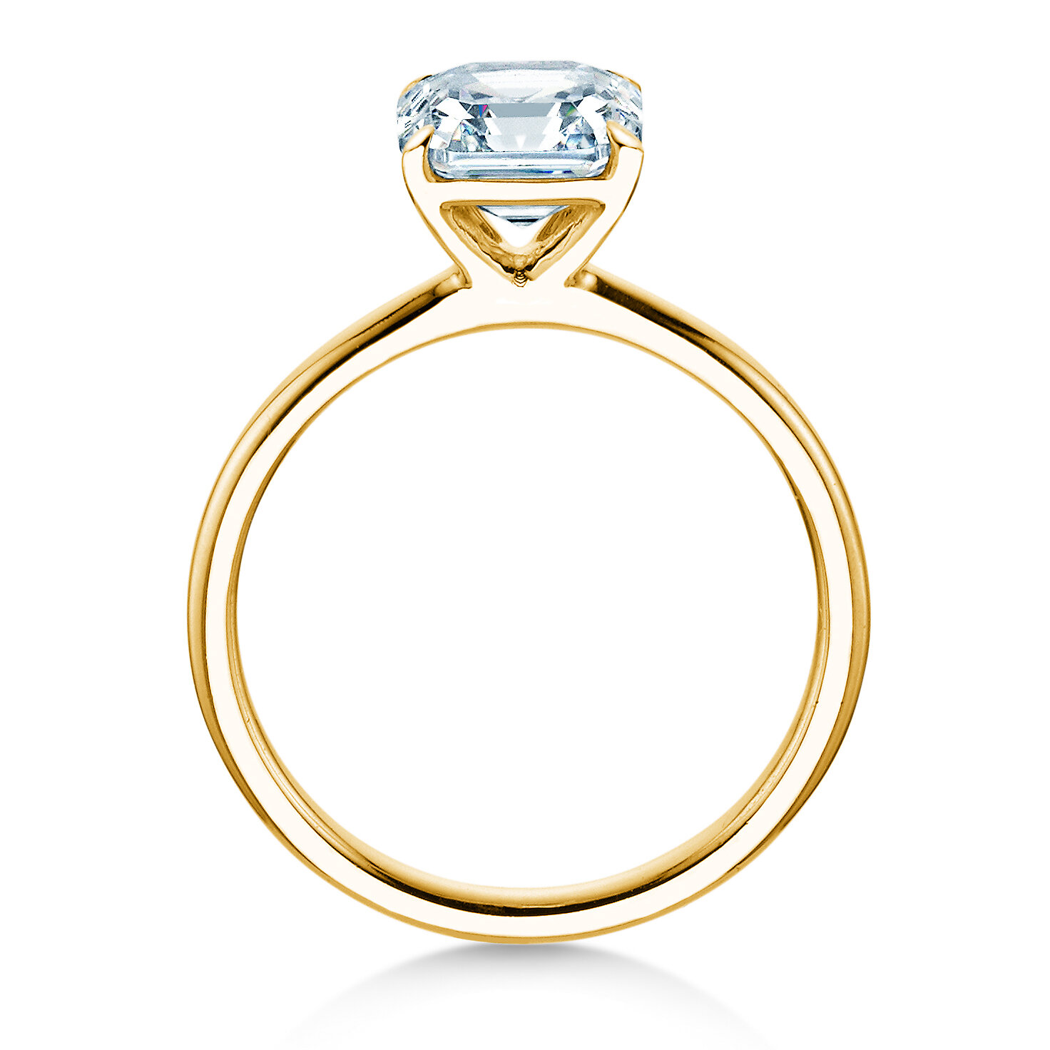 Als ebenbürtige Ergänzung haben wir die dazu passende Ringschiene entwickelt. Schlicht und edel zugleich in Ihrer Wirkung, sorgt sie für den angemessenen Rahmen für den außergewöhnlichen Asscher-Cut. Die Ringschiene ist in jedem Ring perfekt auf die Steinmaße abgestimmt.