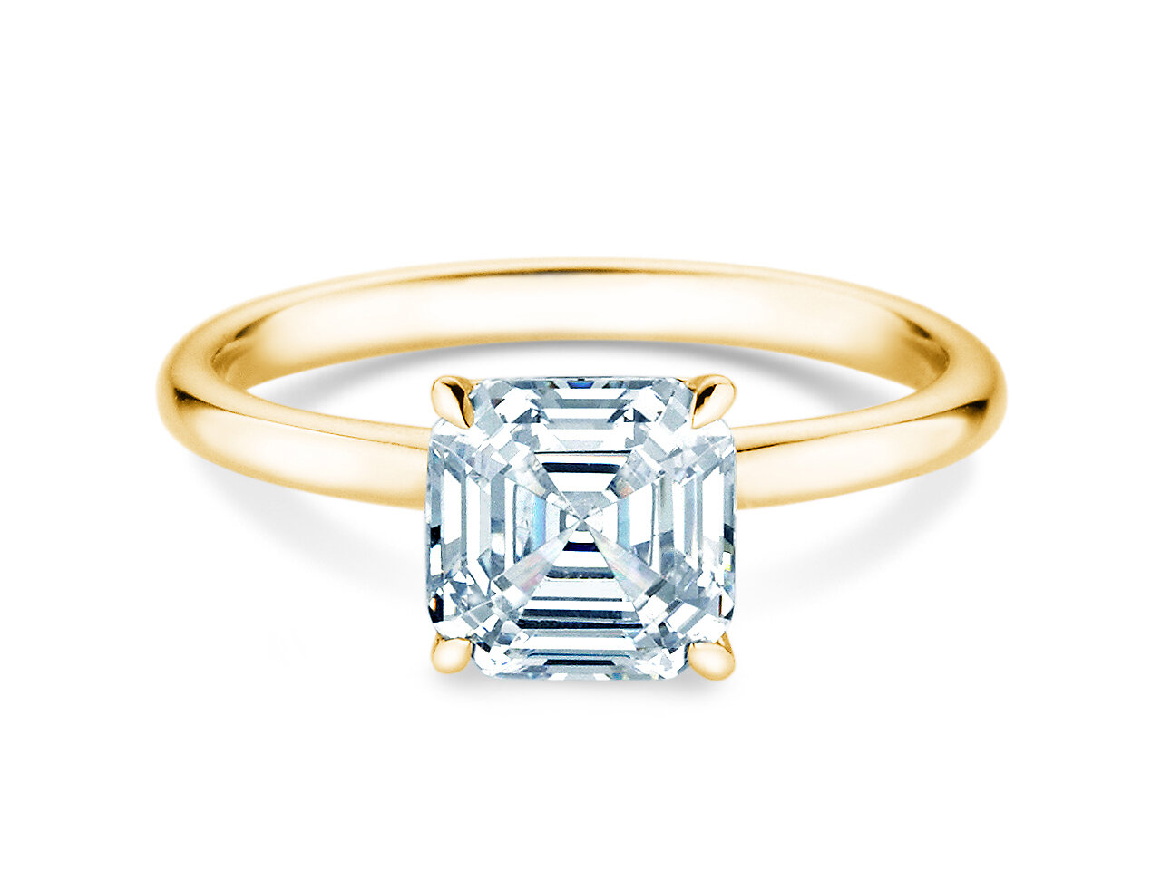 Klar geschnittene Formen und funkelnde Facetten zeichnen einen Asscher-Cut-Diamanten aus.