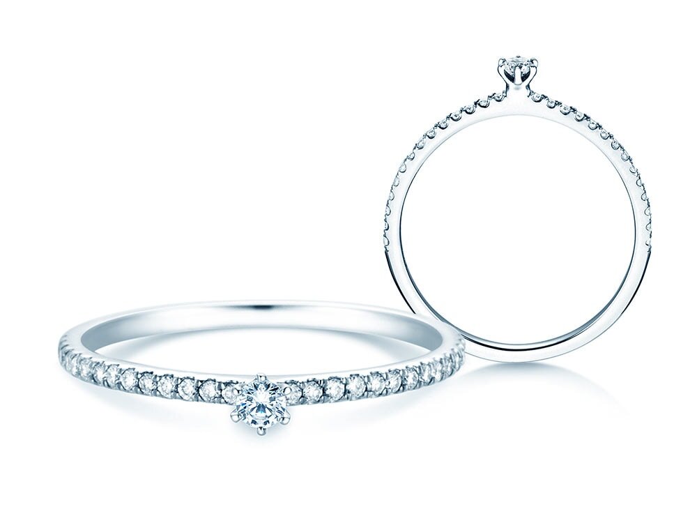 Verlobungsring Classic Pavé in 14K Weißgold mit Diamanten 0,20ct G/SI