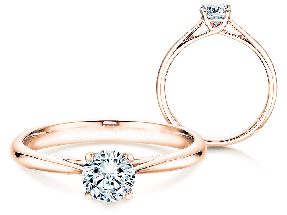 Eine kunstvoll gestaltete Fassung hebt den Diamanten elegant über die schlicht gearbeitete Ringschiene hinaus. So wird das Maximum des einfallenden Lichts reflektiert und der Diamant kann sein magisches Funkeln optimal entfalten. Der Auftritt dieses Rings ist angenehm zurückhaltend und zugleich stilvoll und trendy.