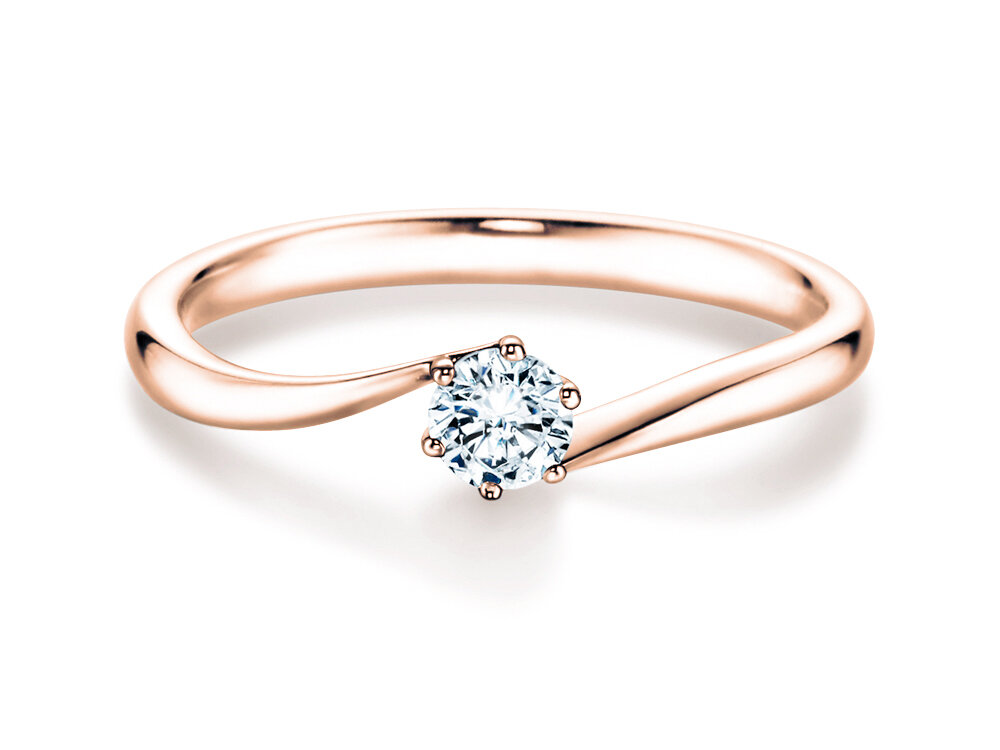 Anmutig und grazil: Zärtlich umarmt die Ringschiene aus feinem Roségold den wertvollen Edelstein im Solitärring Devotion. Die dem Diamanten zulaufende Ringschiene verjüngt sich und setzt den Brillanten somit optimal in Szene - für eine gelungene Inszenierung des edlen Diamanten.