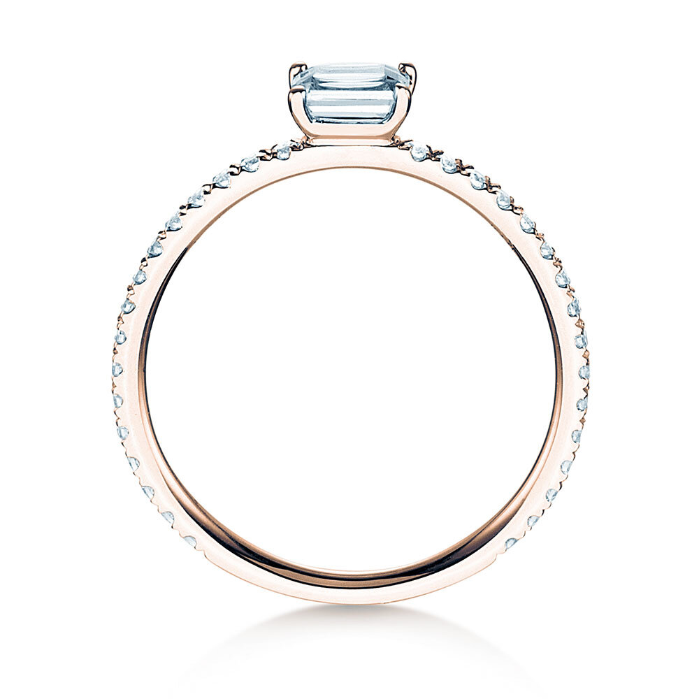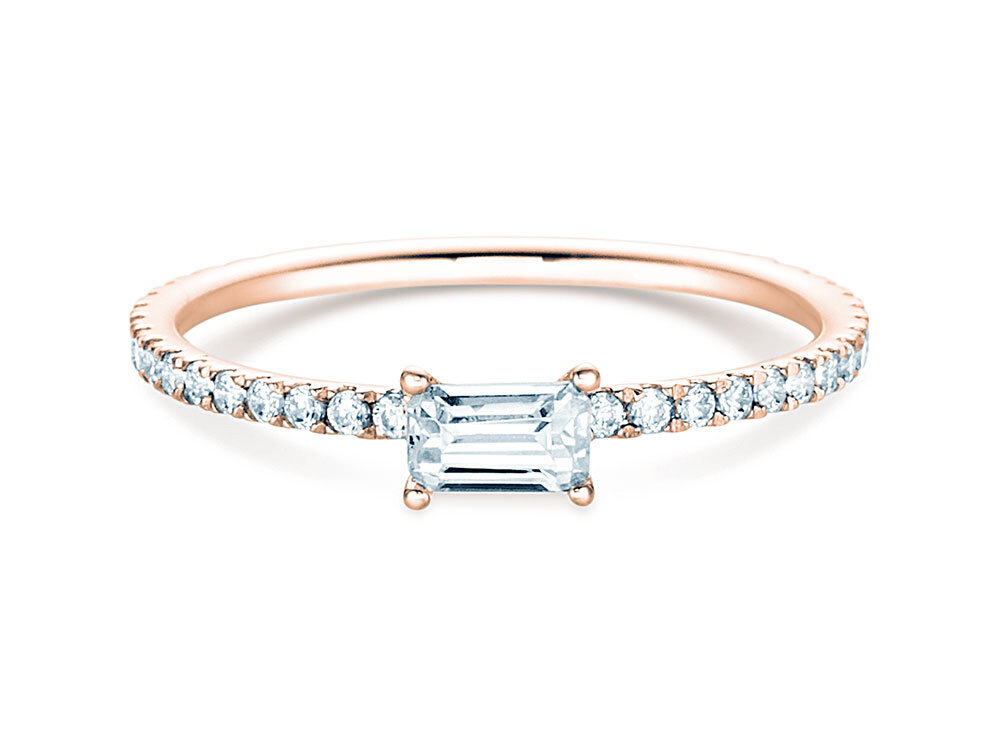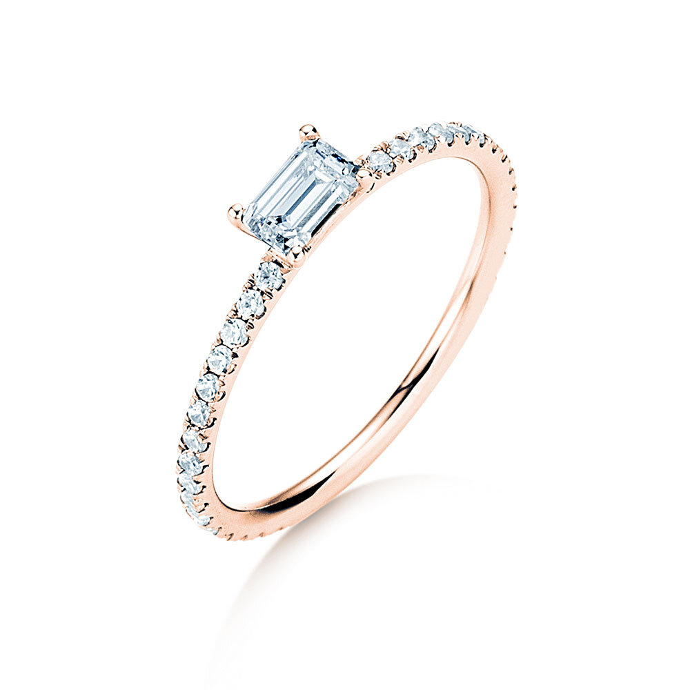Fein und filigran verarbeitet präsentiert sich der Verlobungsring Emerald Cut. Wählbar in vier Diamantgrößen ab 0,20 Karat. Im präzise geschmiedeten Kanal der Ringschiene sind Pavé-Diamanten mit zusammen 0,24 ct. gefasst.