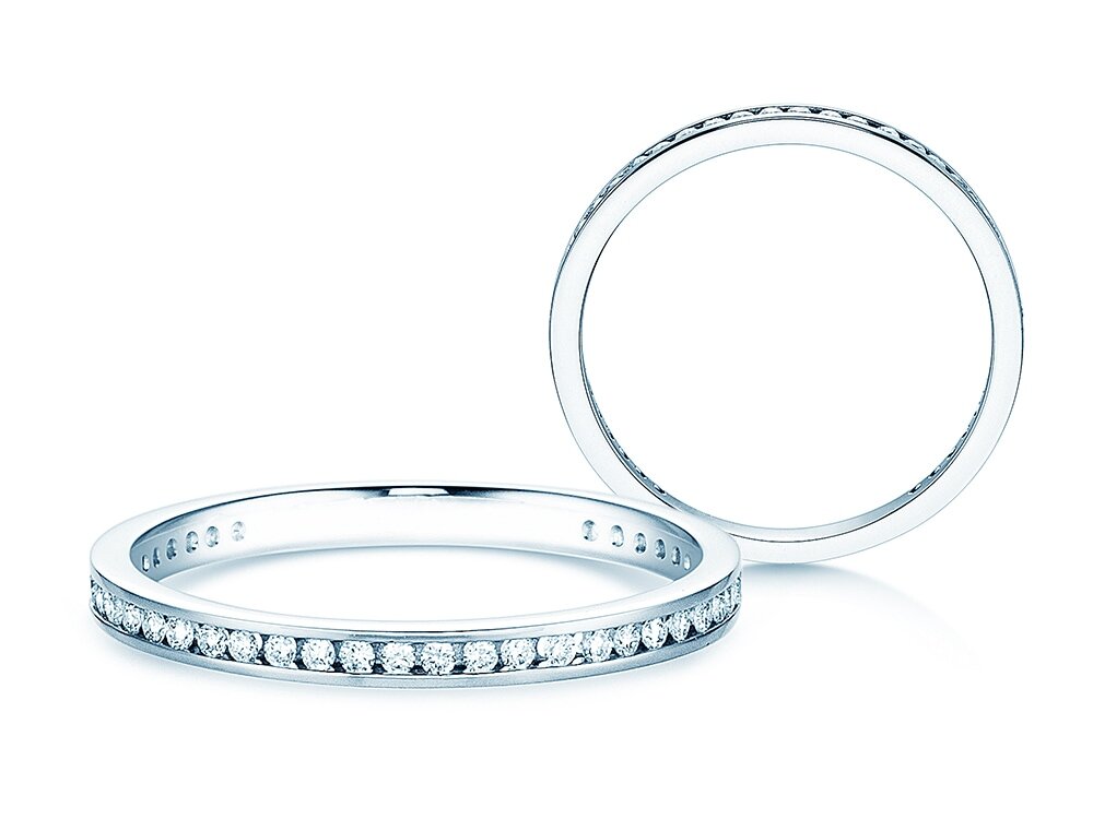 Der Verlobungsring Endless Love kann als Vorsteckring perfekt mit einem Ehering kombinert oder mit anderen Ringen gemeinsam getragen werden. Jetzt verfügbar in 3 Diamantgrößen.