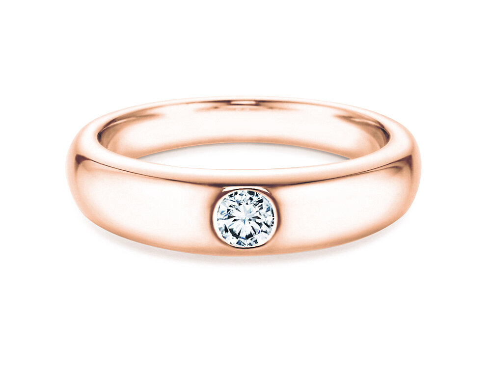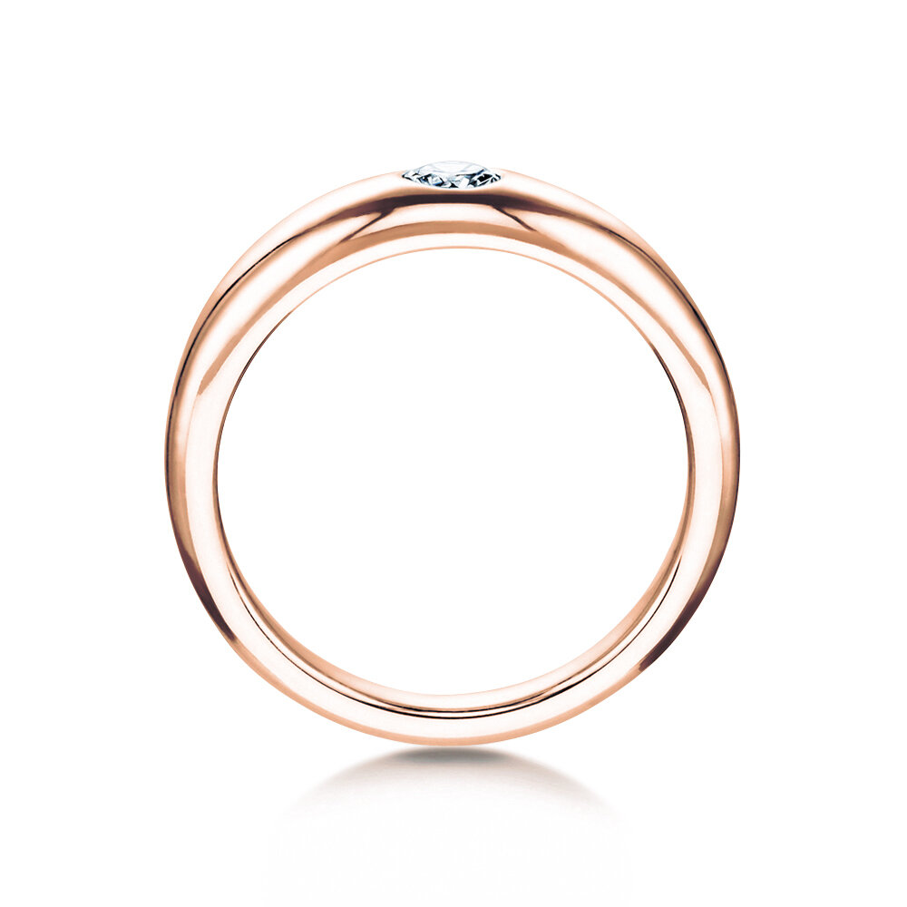 Die Ringform ist schlicht und klassisch – vielleicht könnte man sie als die klassische Ringform schlechthin bezeichnen. Die abgerundete Außenseite wird betont durch einen dezent in die Ringschiene eingearbeiteten Diamanten, der das Modell Promise zu einem echten Highlight macht. Der leuchtend helle Diamant wird geschützt durch die Ringschiene.