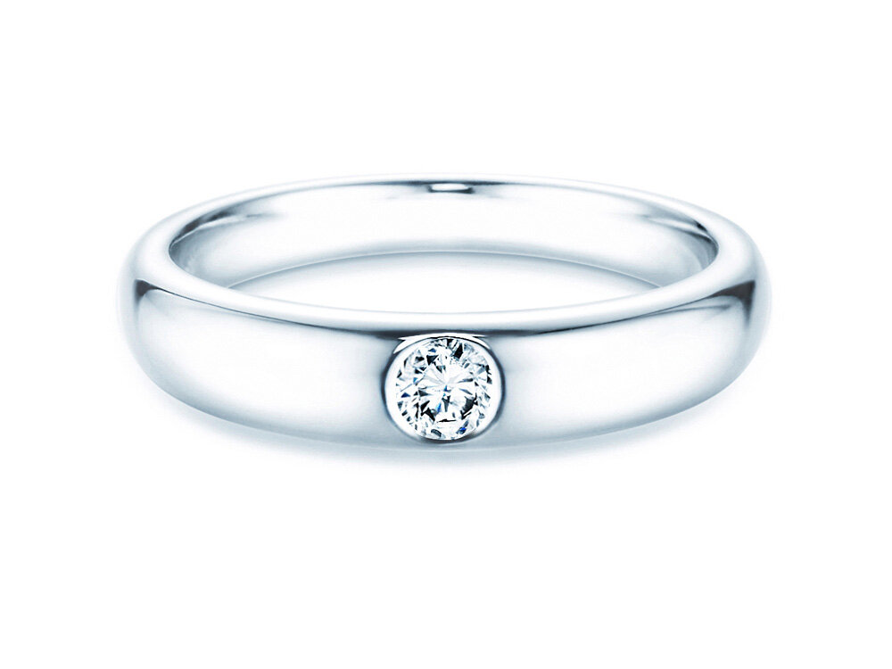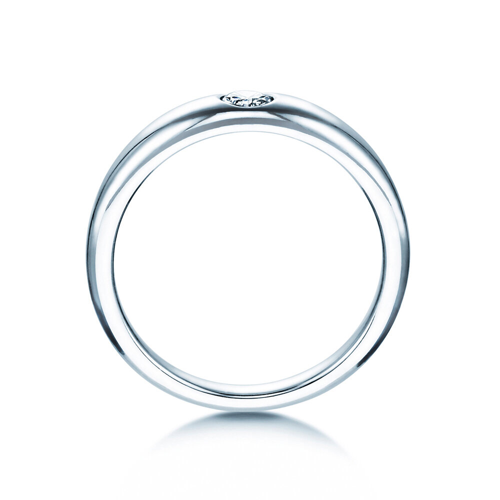 Die Ringform ist schlicht und klassisch – vielleicht könnte man sie als die klassische Ringform schlechthin bezeichnen. Die abgerundete Außenseite wird betont durch einen dezent in die Ringschiene eingearbeiteten Diamanten, der das Modell Promise zu einem echten Highlight macht. Der leuchtend helle Diamant wird geschützt durch die Ringschiene.