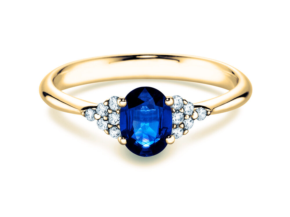 14K Gelbgold mit Saphir 1,00ct und Diamanten 0,12ct