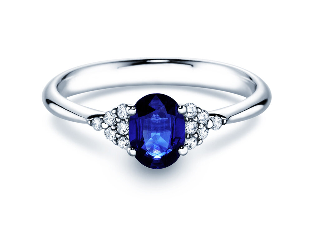 9K Weißgold mit Saphir 1,00ct und Diamanten 0,12ct
