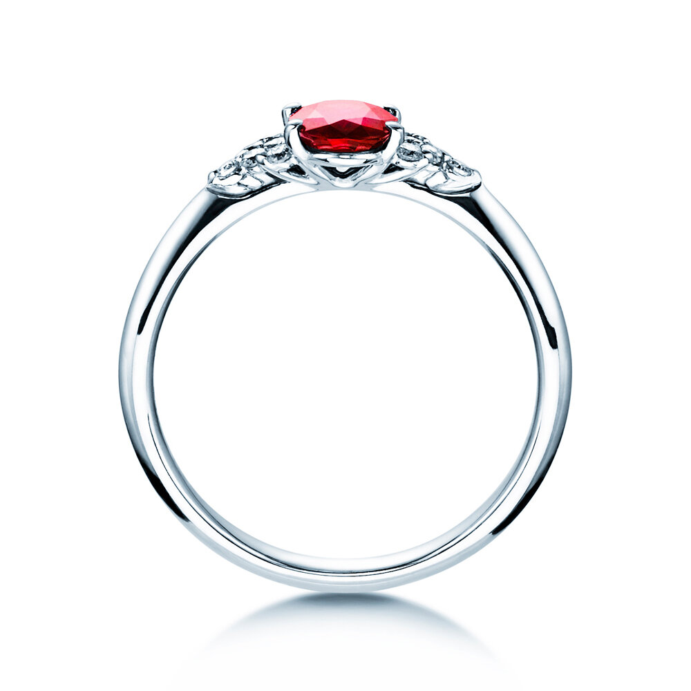 Ein extravaganter Verlobungsring mit Farbedelstein und Diamanten, der sich bestens als Antragsring eignet. Die Seitensteine betonen den intensiv leuchtenden Hauptstein – sechs funkelnden Diamanten auf jeder Seite geben edlen Kleinod eine individuelle Note.