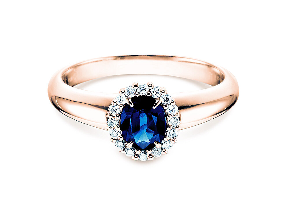 14K Roségold mit Saphir 0,60ct und Diamanten 0,12ct