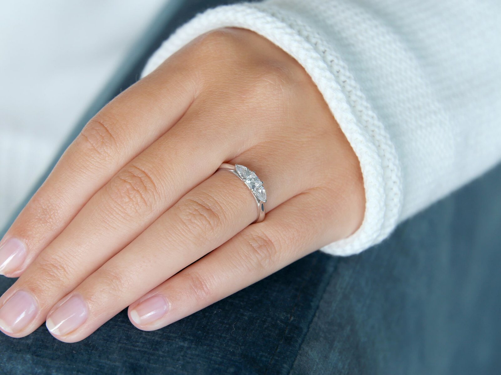 Mit drei Diamanten entfaltet dieser Verlobungsring ein besonders intensives Leuchten, die ausgewogene Komposition gibt ihm einen femininen Touch.